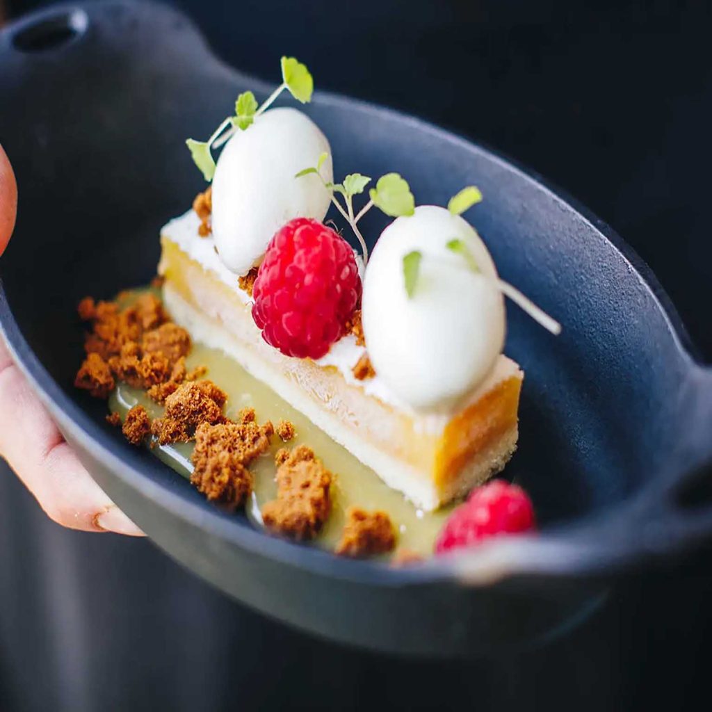 Het viergangenmenu is een ode aan het seizoen. Mijn diner begon met een voorgerecht van gerookte witvis, geserveerd met bloemkoolschuim, zeekraal en een subtiel citrusaccent. Daarna volgde het absolute hoogtepunt: hertenrugfilet met wortelpuree, zwarte bessen en amandelcrème. De smaken waren gelaagd, de presentatie minimalistisch en precies.